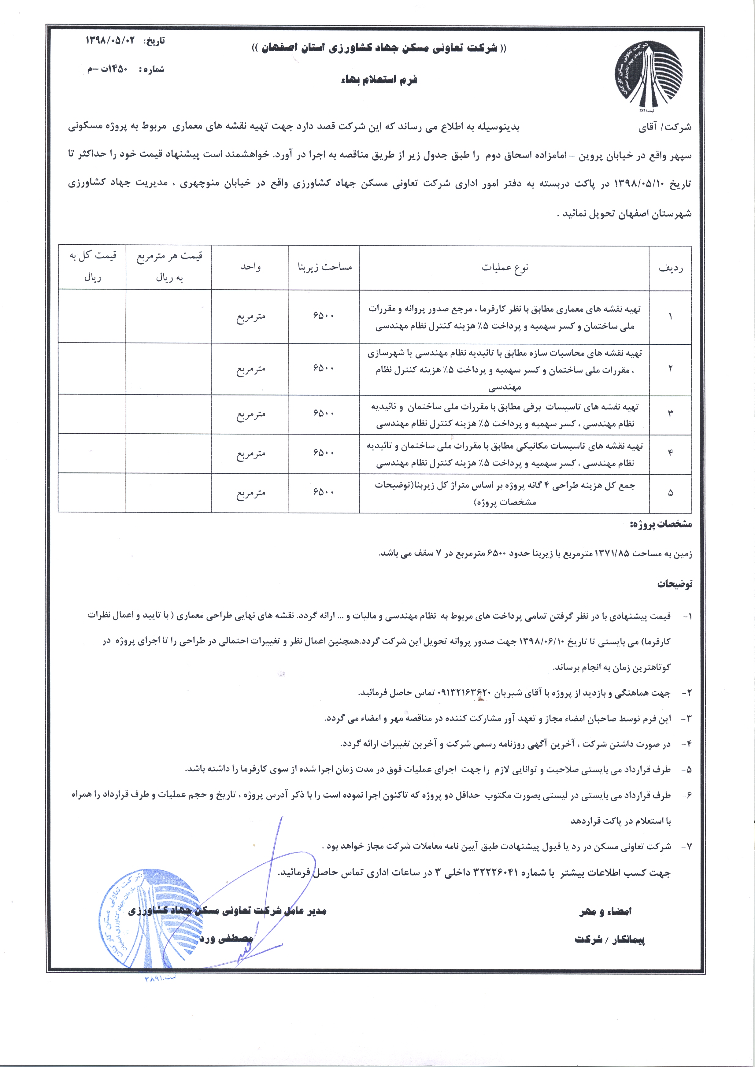 استعلام تهیه نقشه های معماری پروژه مسکونی سپهر