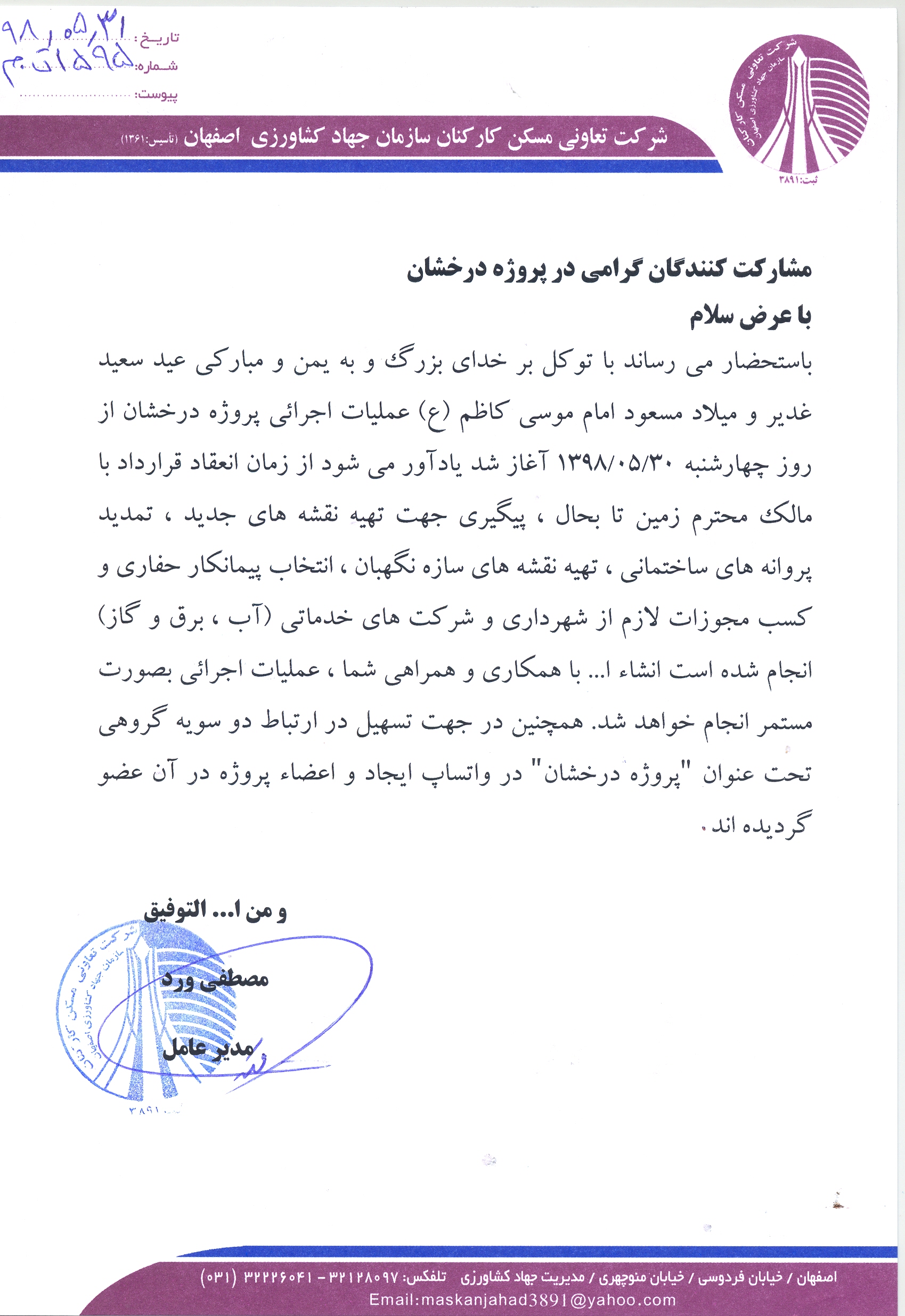 اطلاعیه شروع عملیات اجرایی پروژه مسکونی درخشان