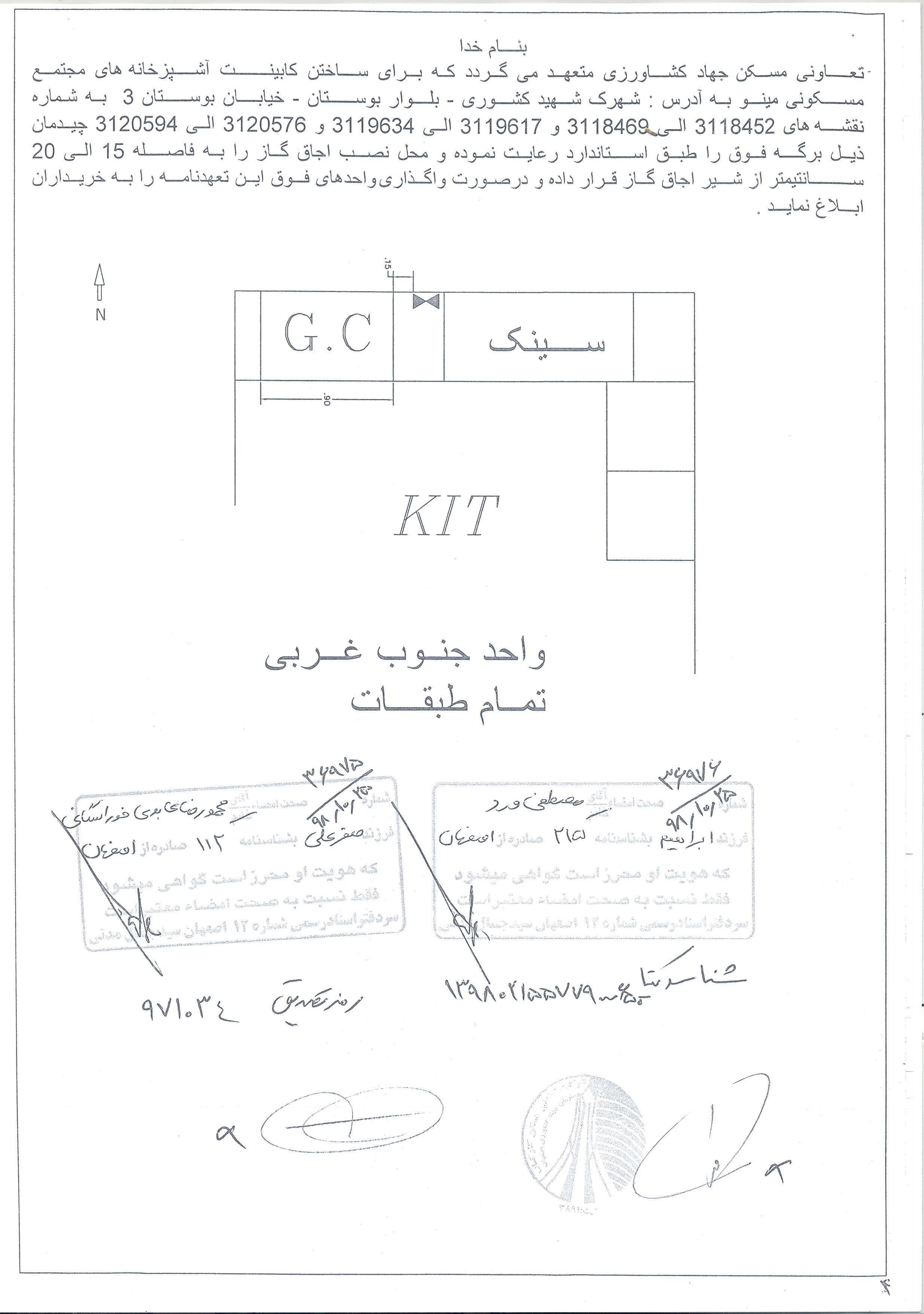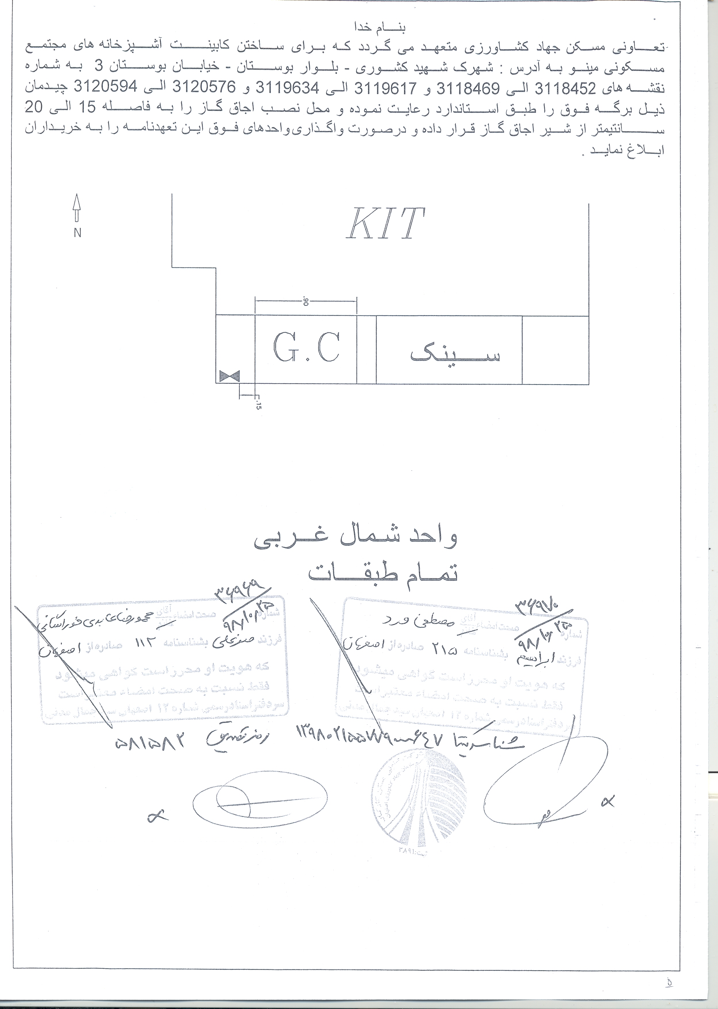 اطلاعیه الزامات نصب کابینت های پروژه مینو (شهید کشوری )