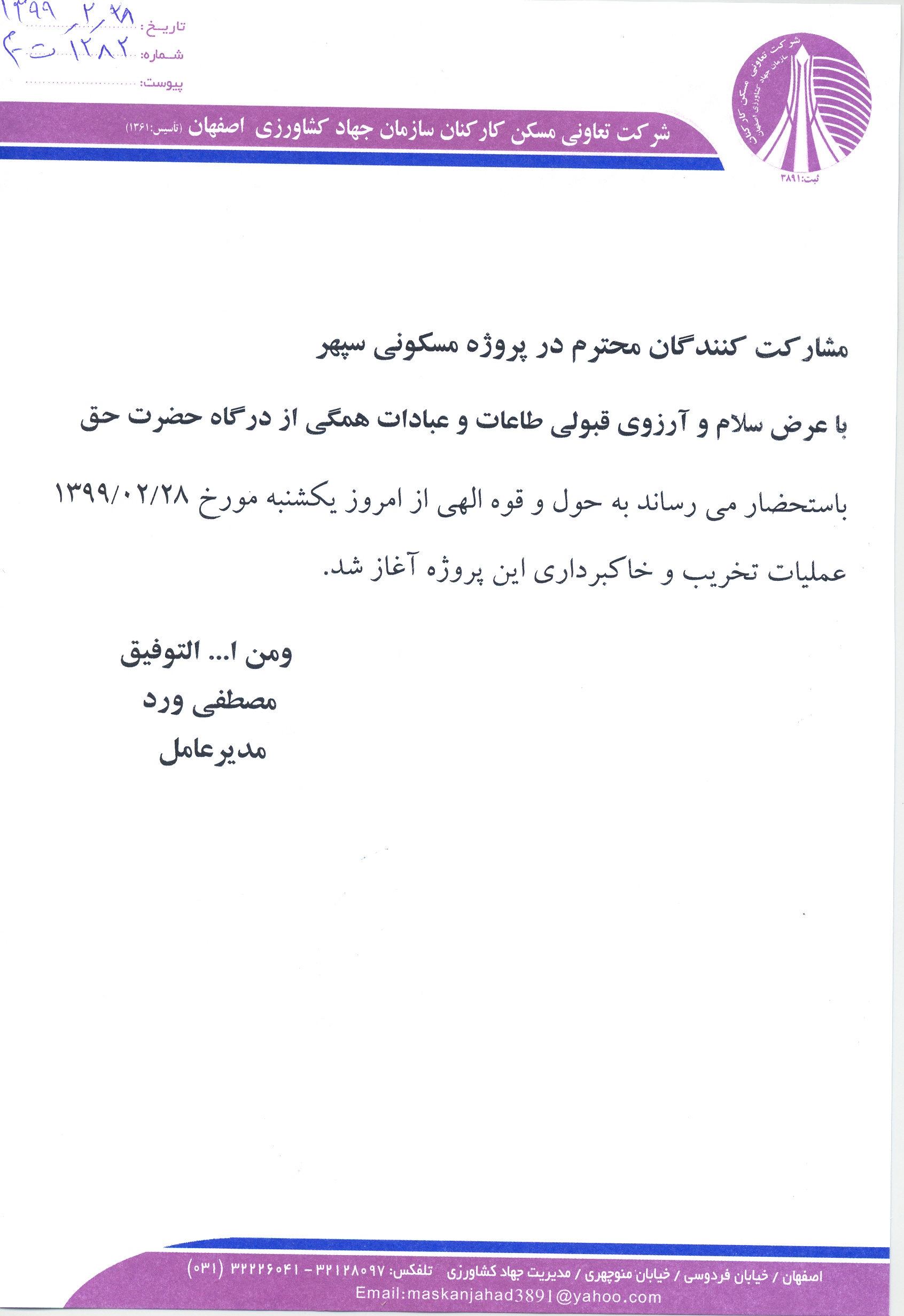 اطلاعیه آغاز عملیات خاکبرداری پروژه سپهر