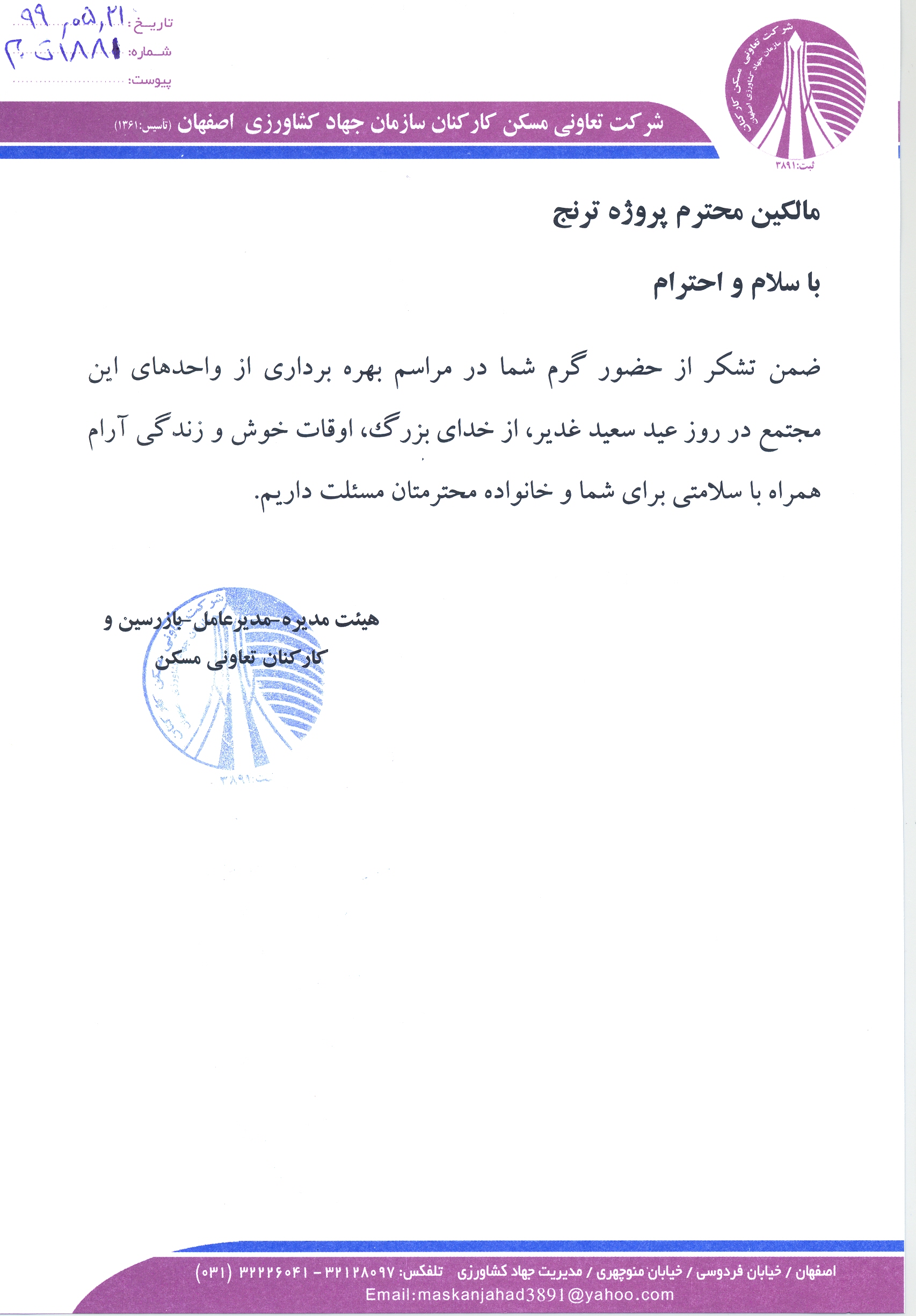 تشکر از مالکین پروژه ترنج جهت حضور در جلسه افتتاحیه