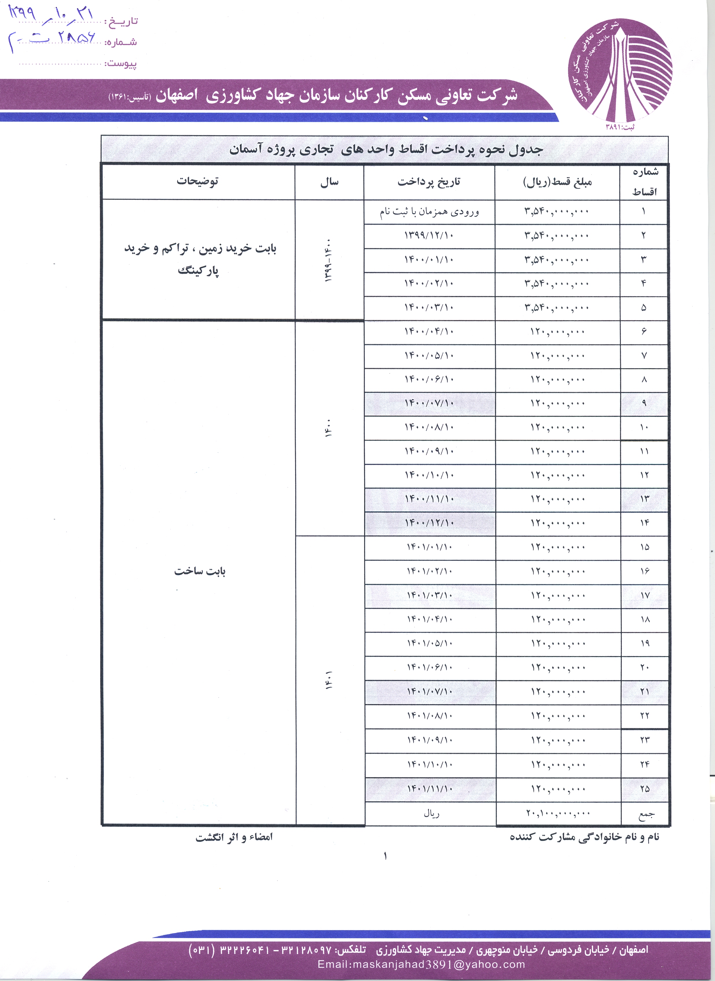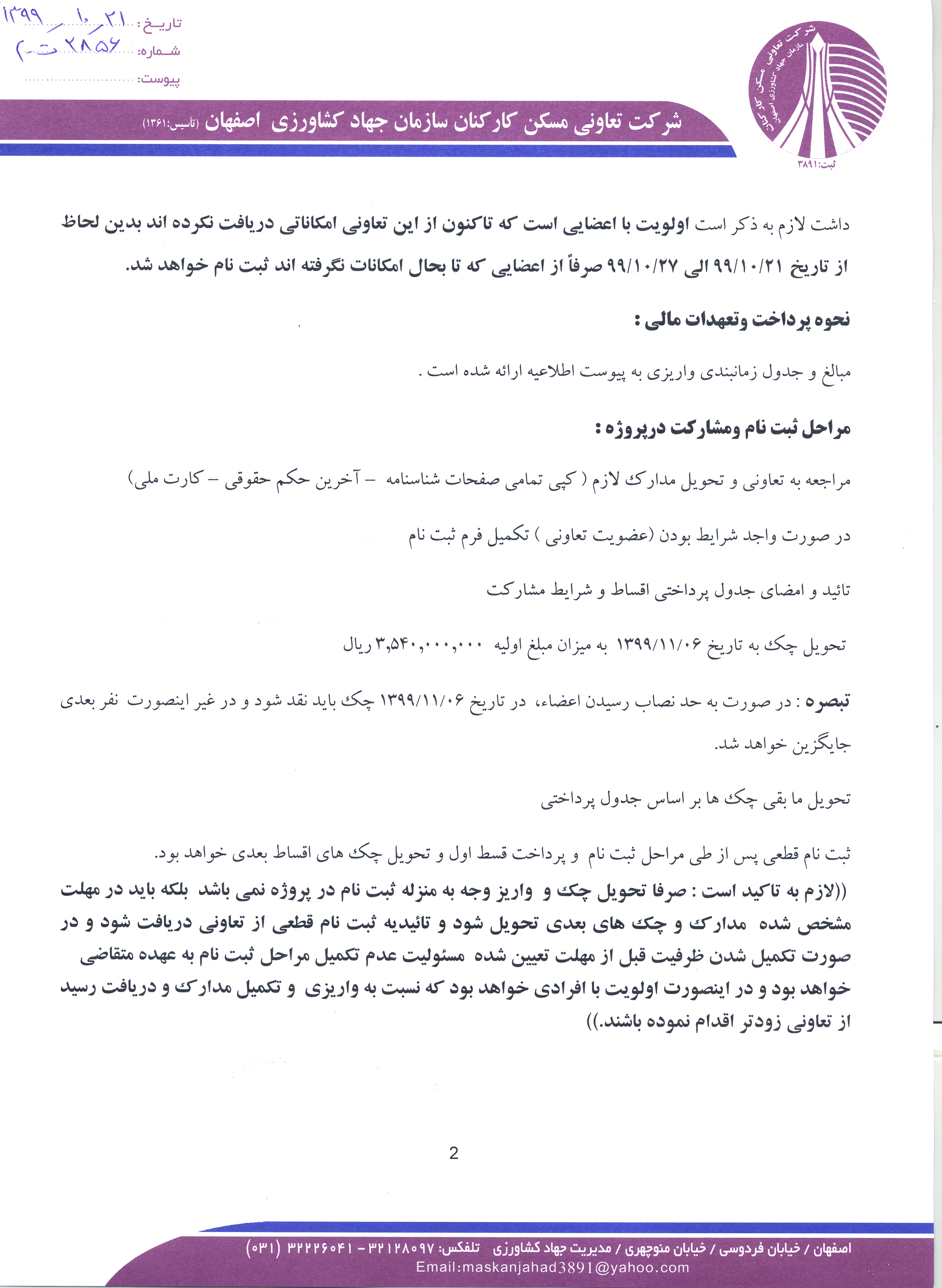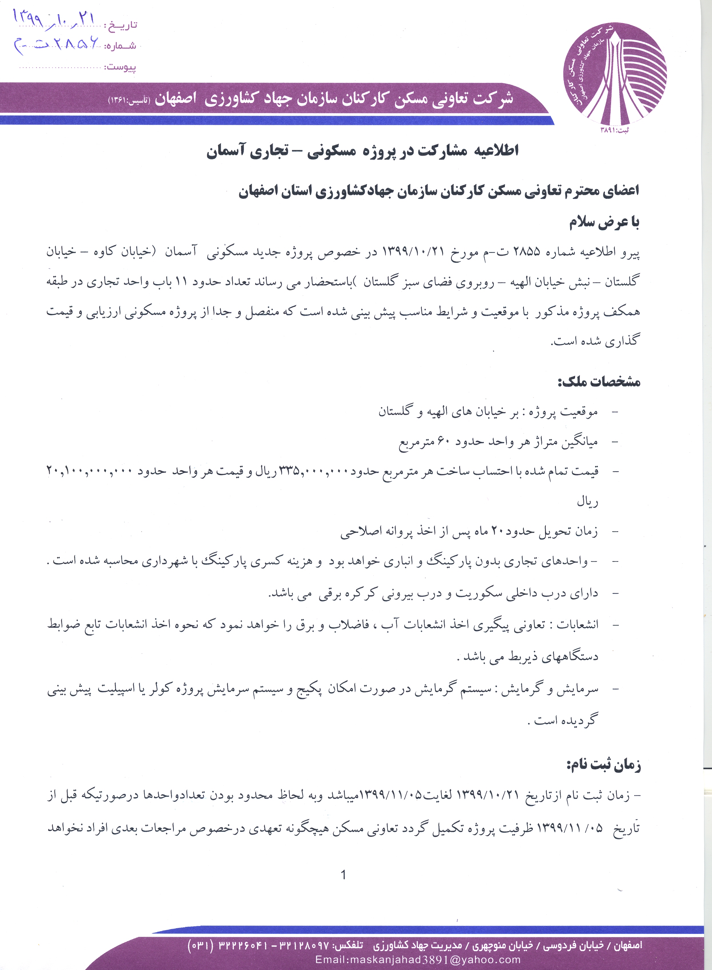 اطلاعیه پروژه تجاری آسمان