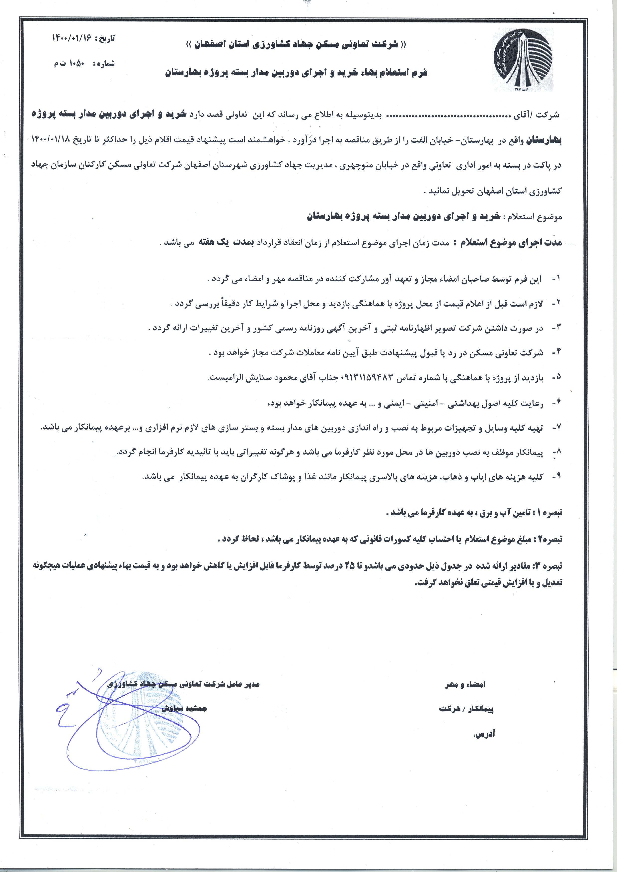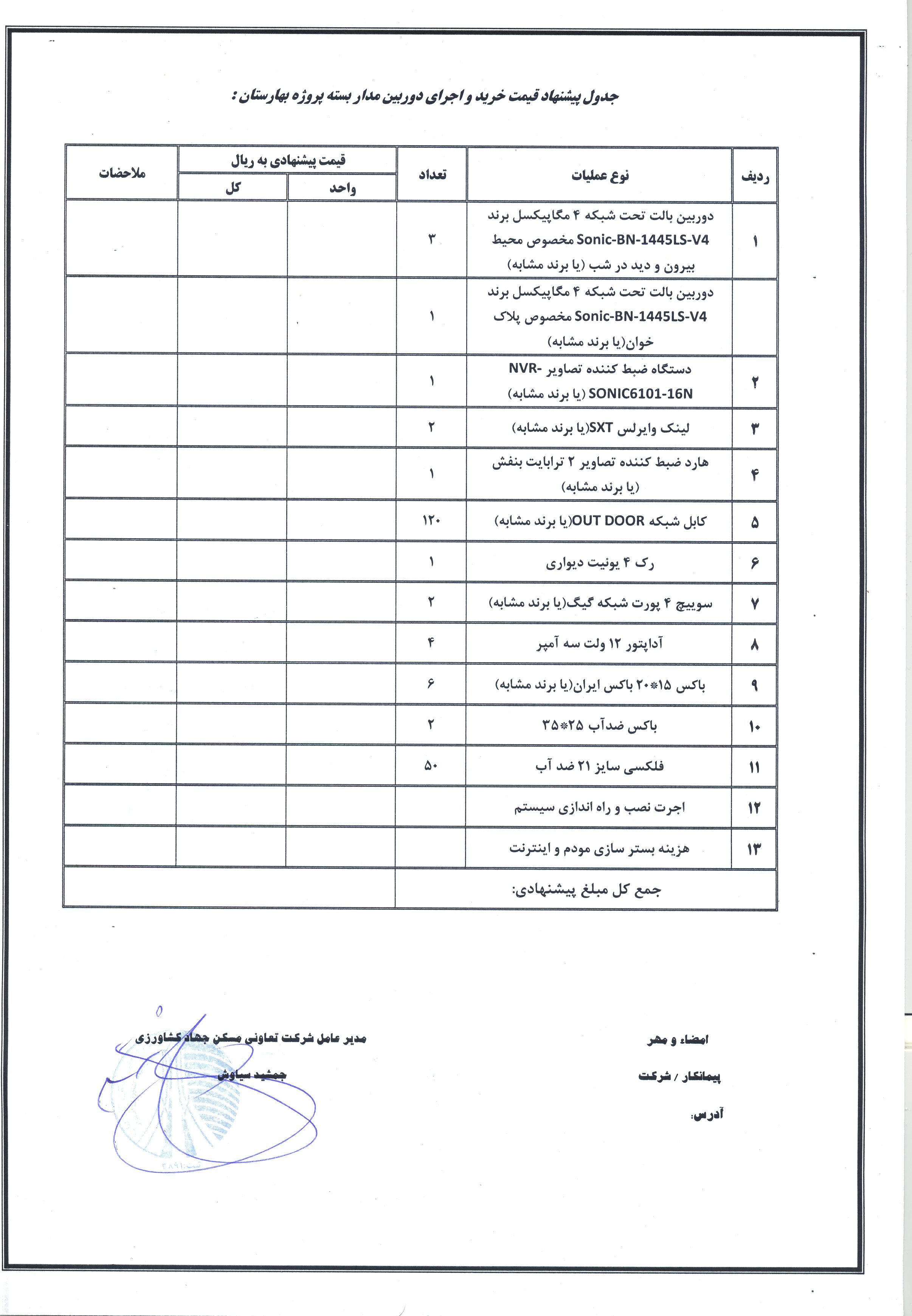 استعلام خرید و نصب دوربین مداربسته پروژه بهارستان