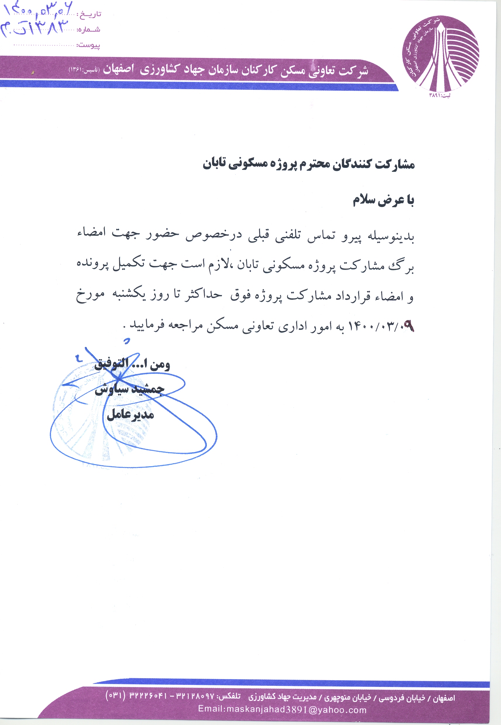 اطلاعیه پروژه مسکونی تابان