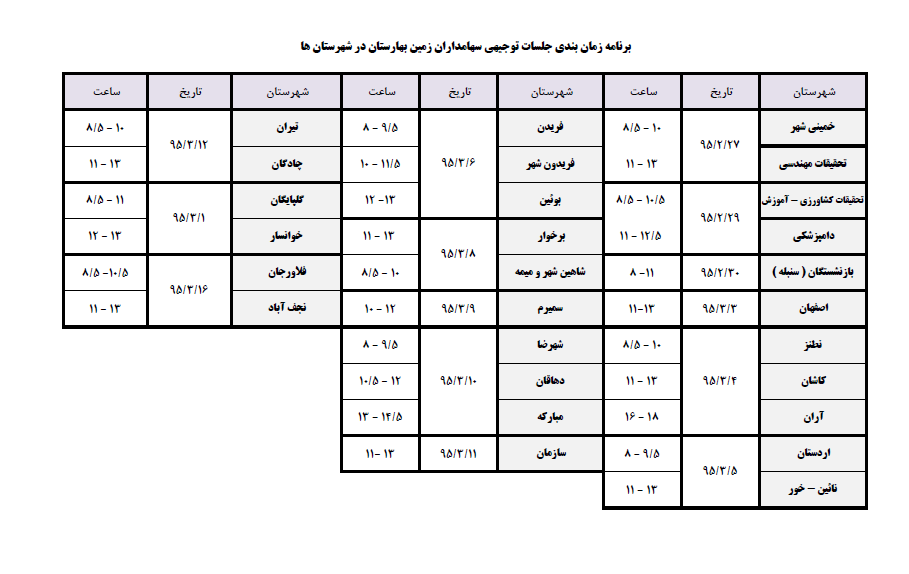 برنامه جدول زمانبندی جلسات توجیهی زمین بهارستان