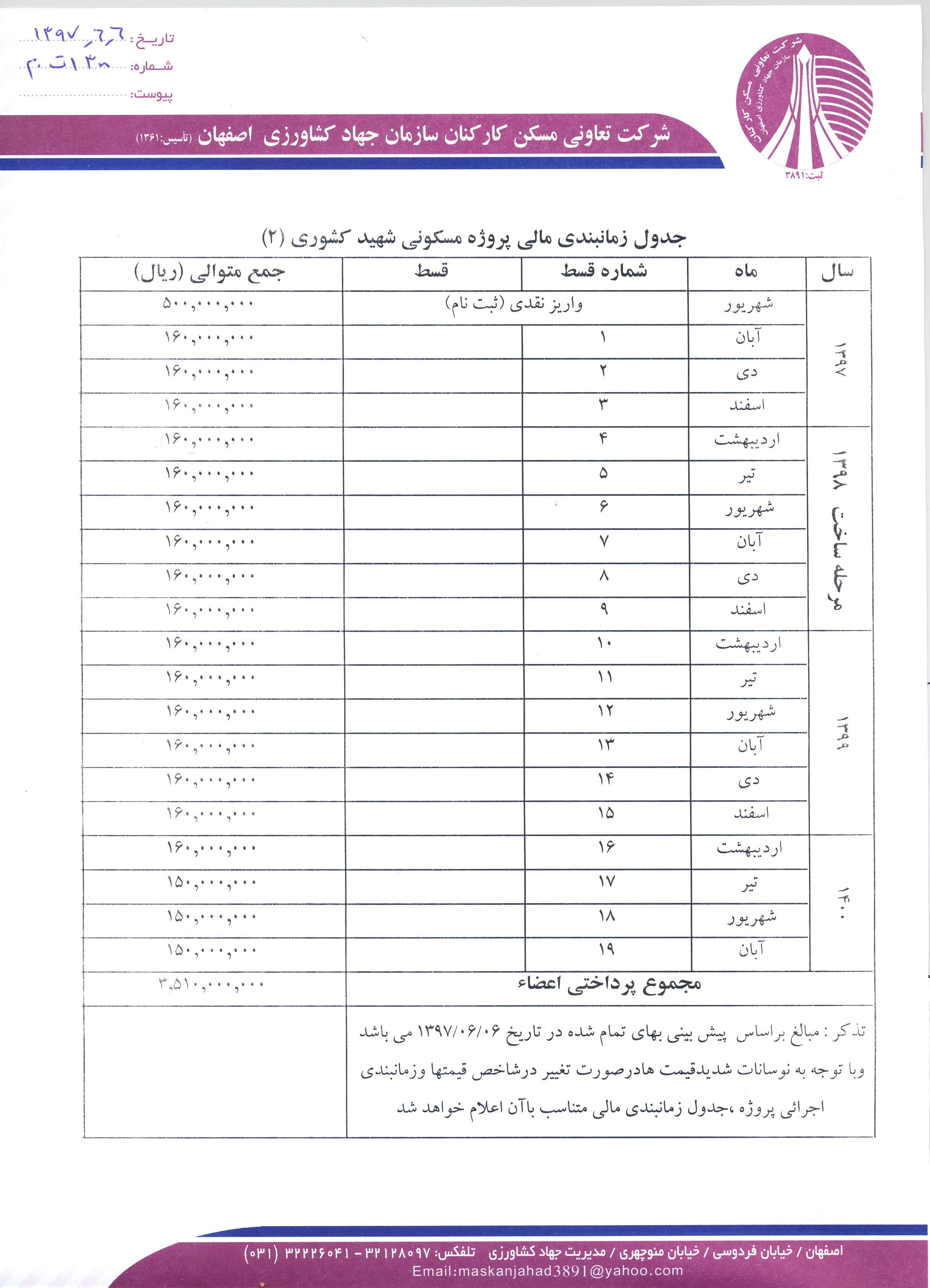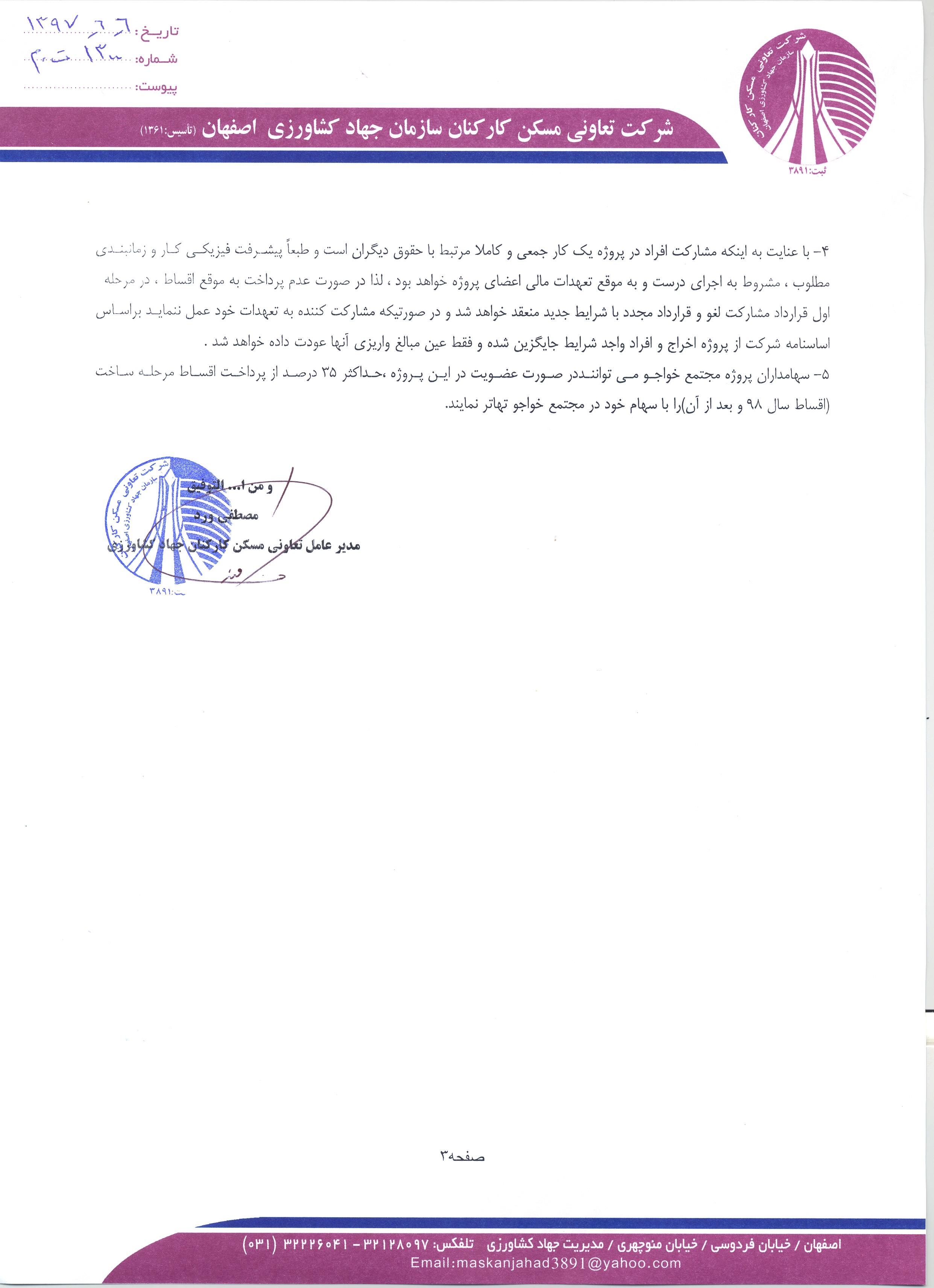 اطلاعیه احداث پروژه مسکونی جدید (شهید کشوری 2)