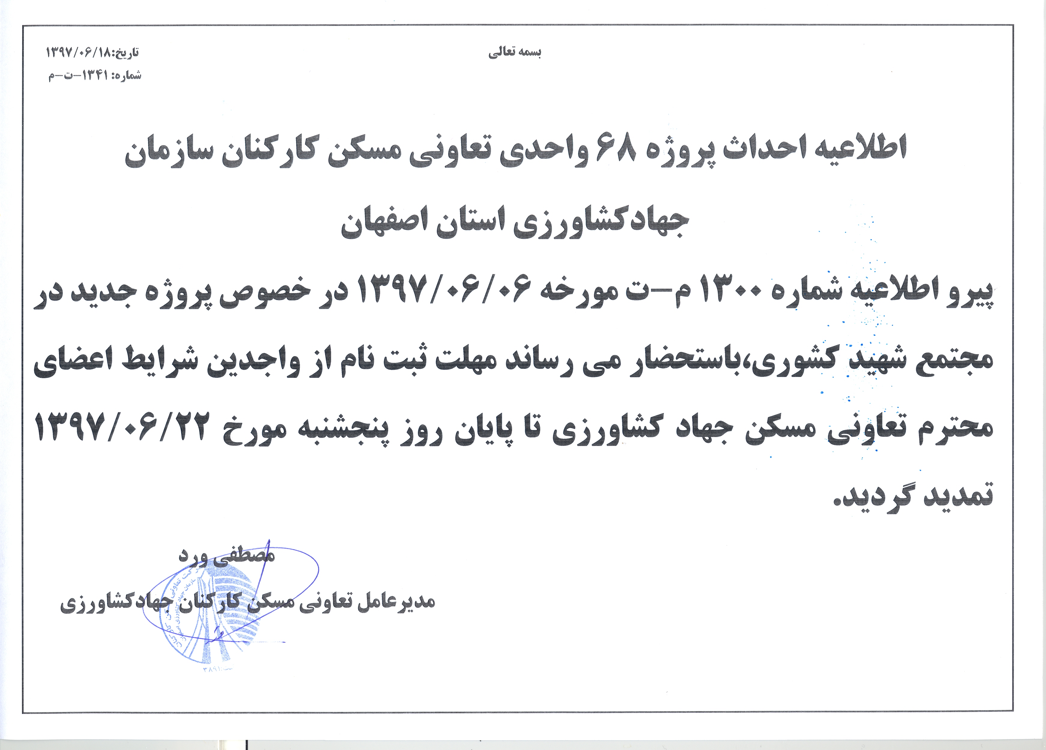 اطلاعیه تمدید ثبت نام پروژه شهید کشوری