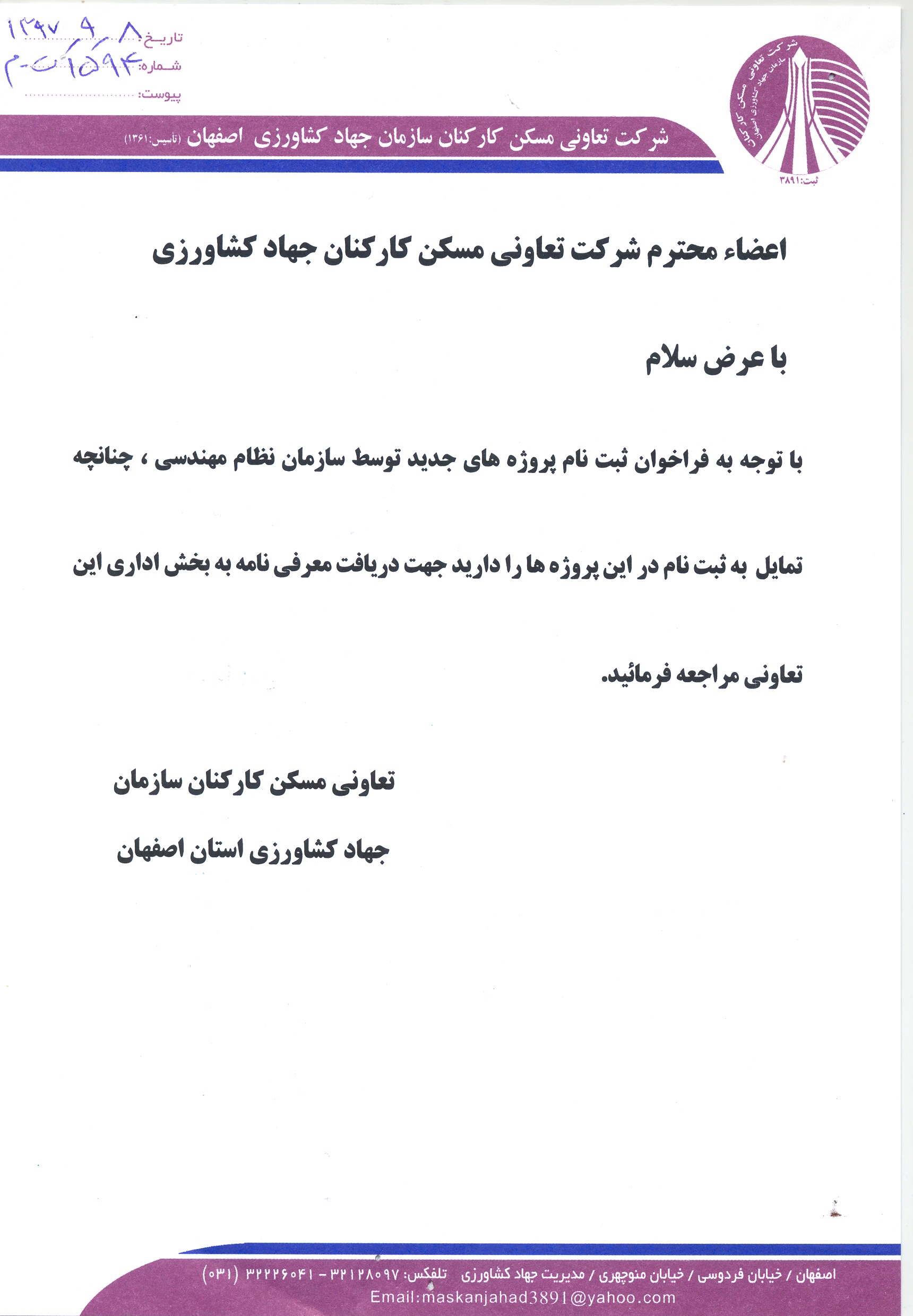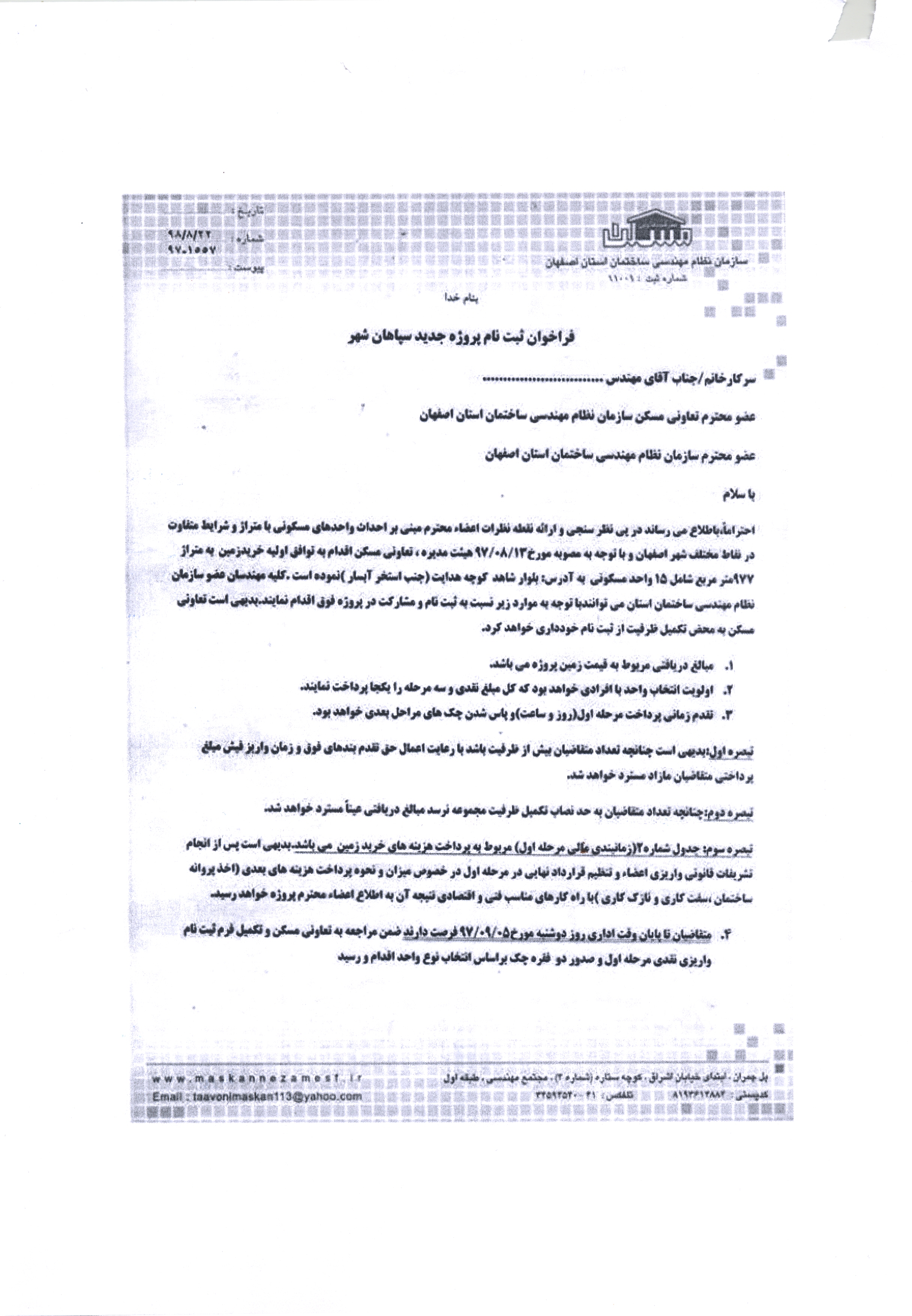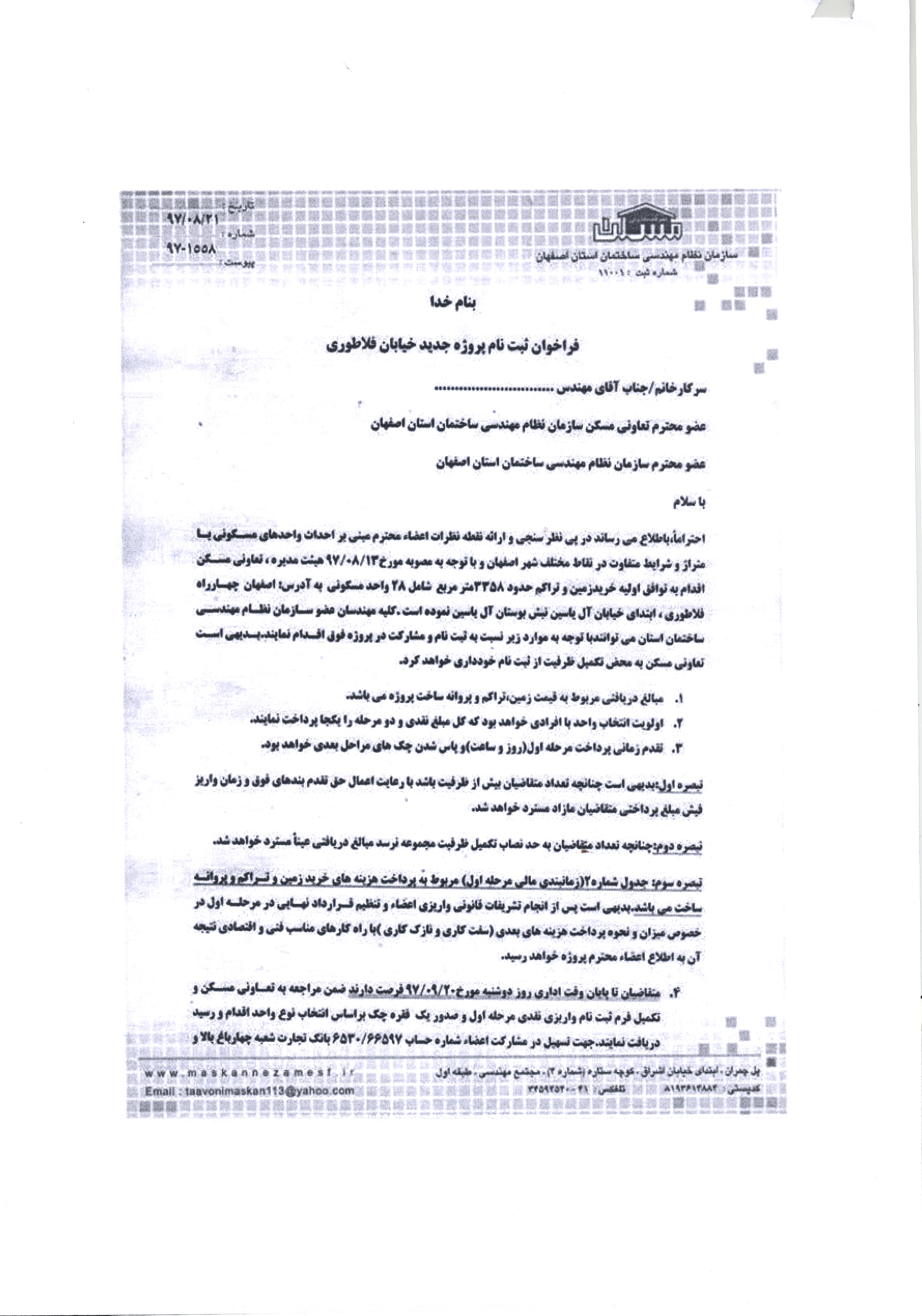 اطلاعیه پروژه های مسکونی تعاونی مسکن نظام مهندسی ساختمان