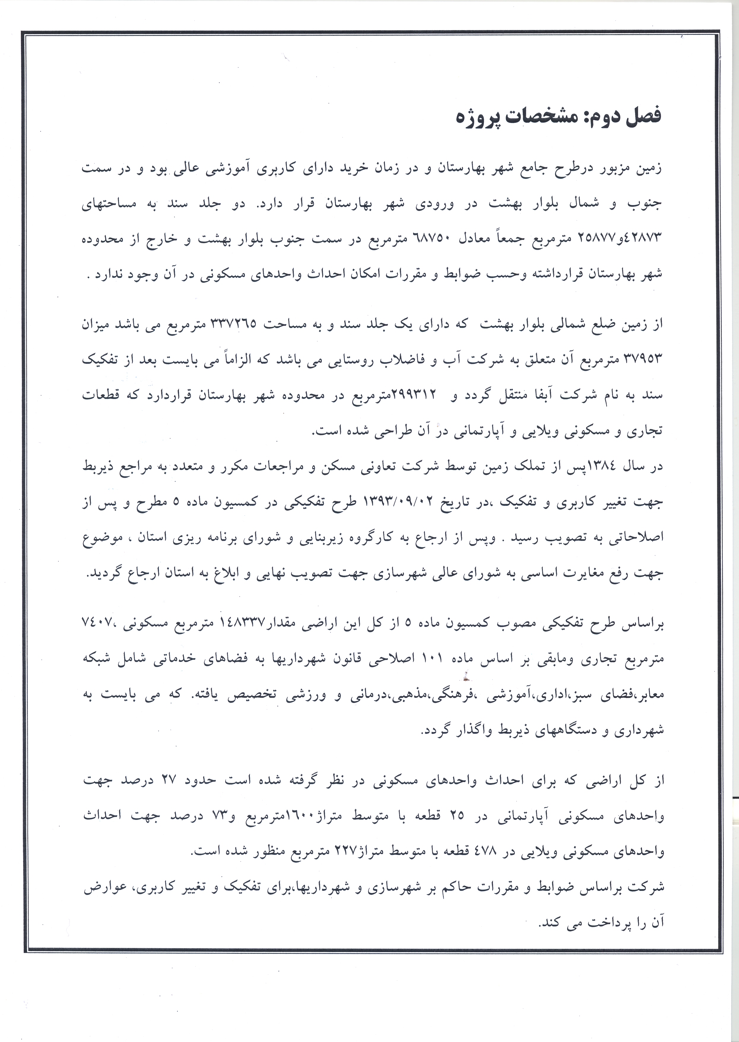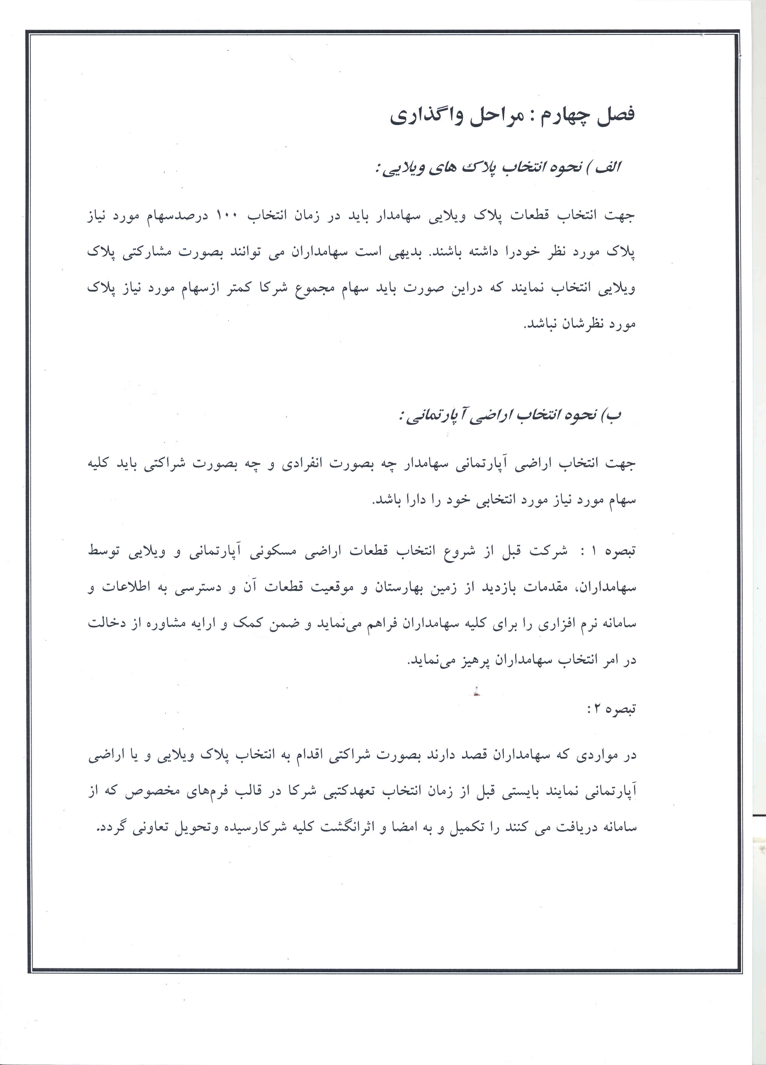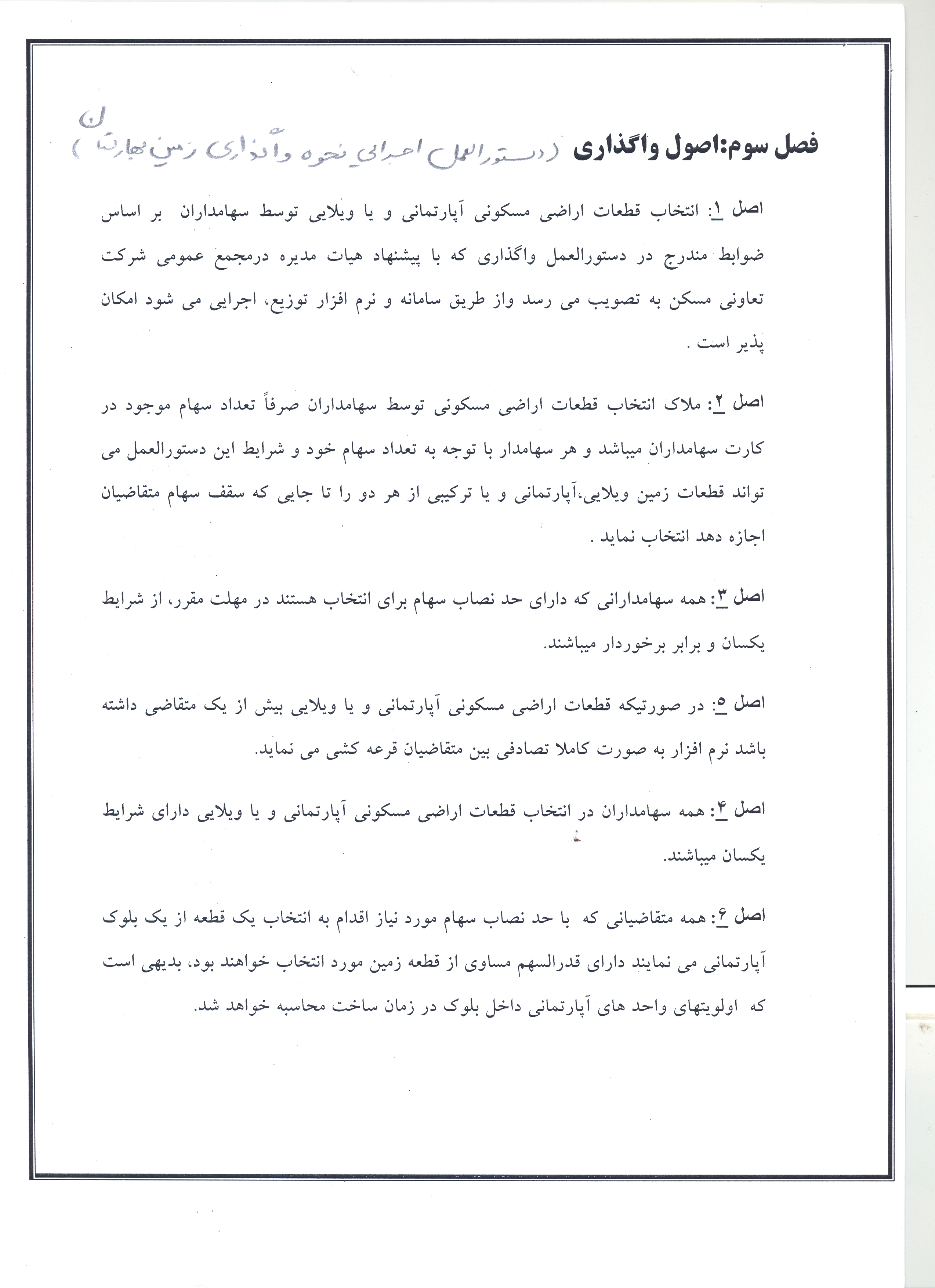 دستورالعمل اجرایی نحوه واگذاری زمین پروژه بهارستان