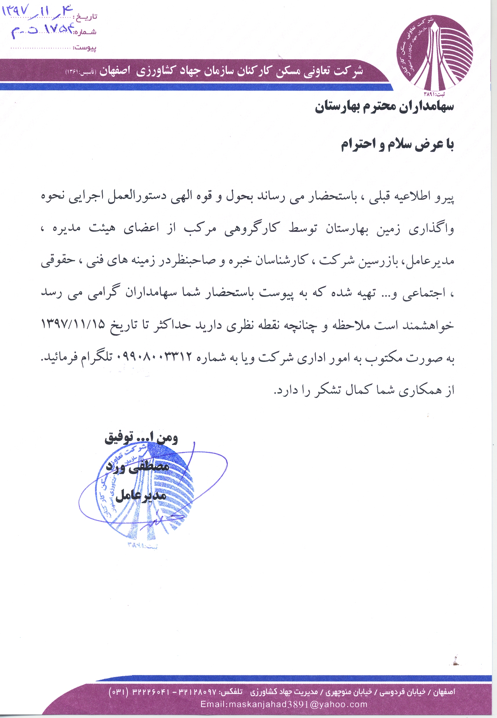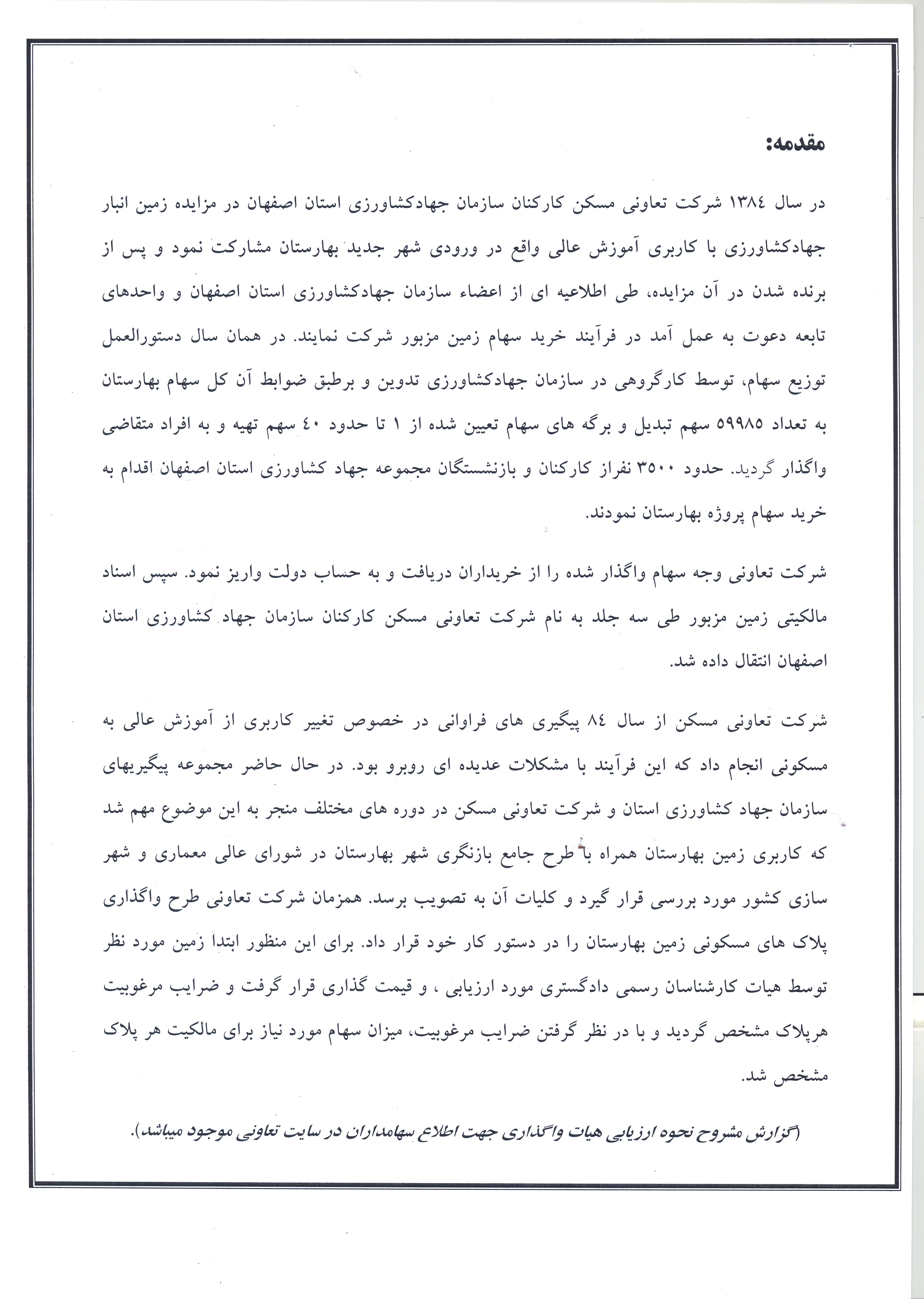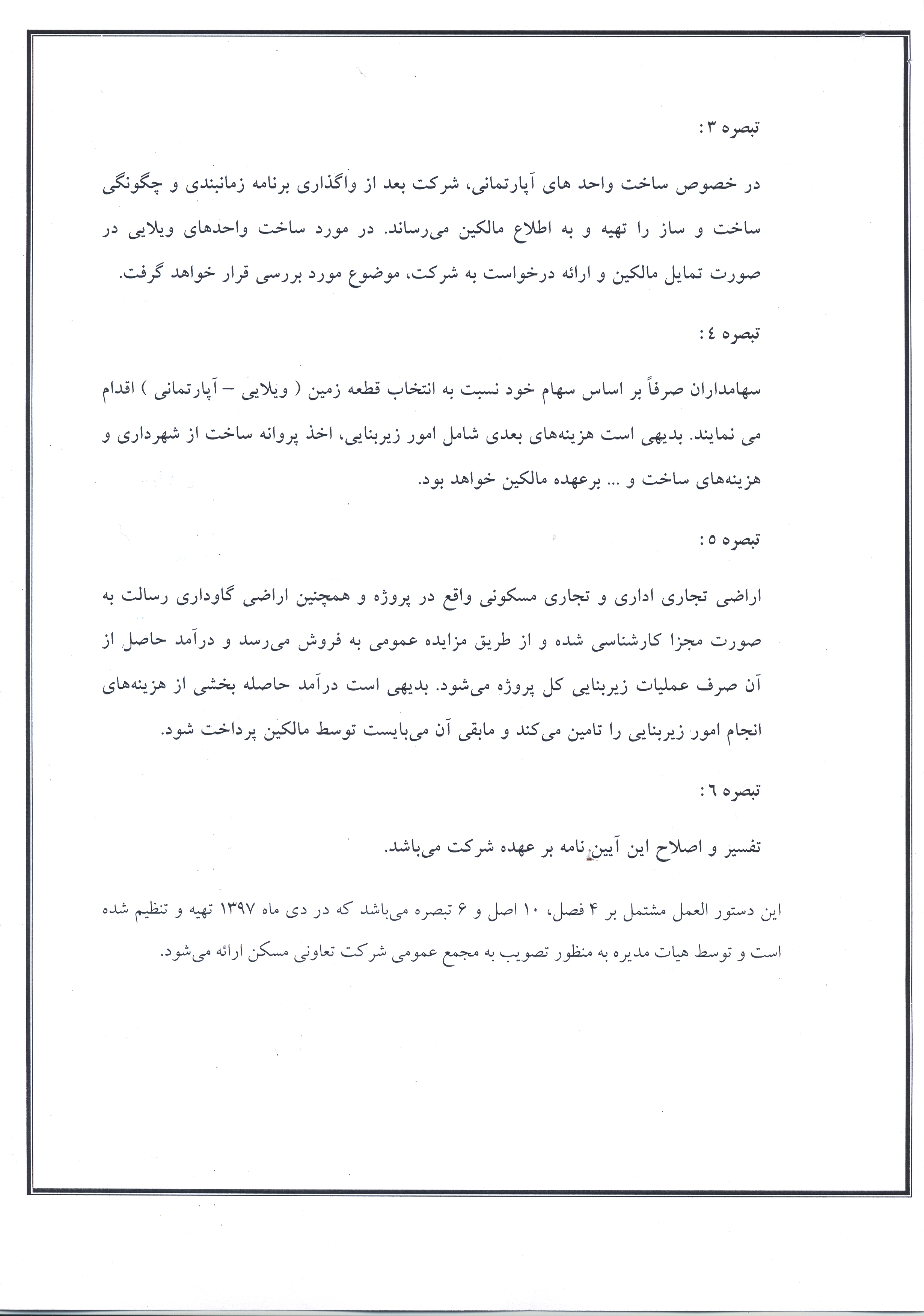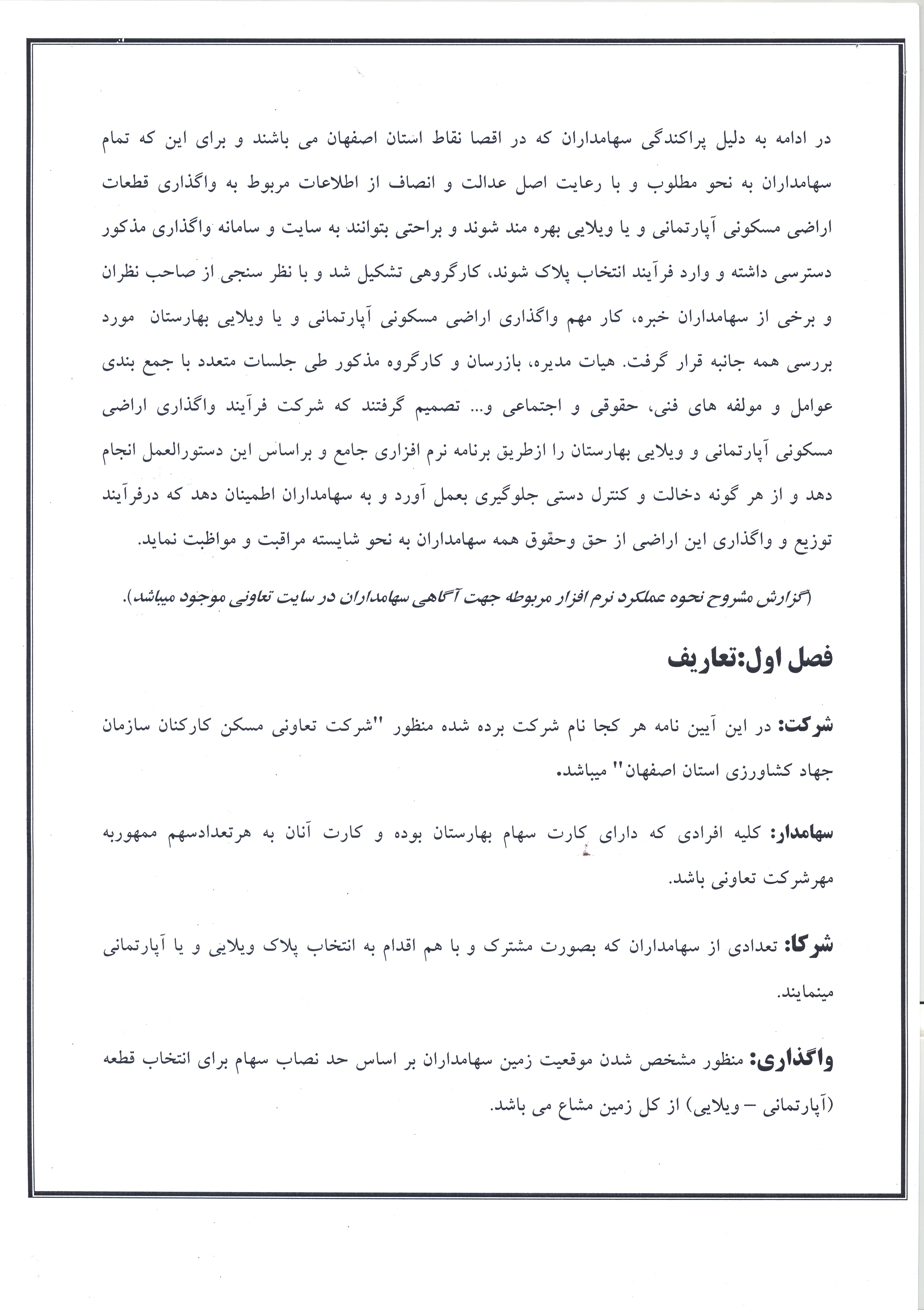دستورالعمل اجرایی نحوه واگذاری زمین پروژه بهارستان