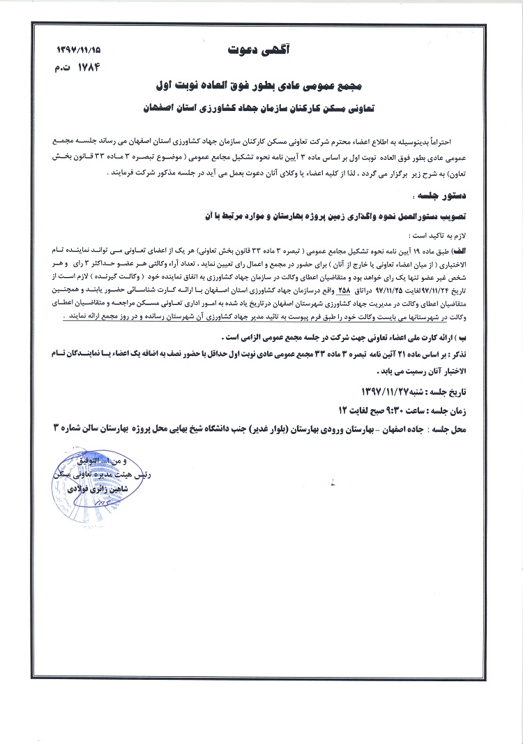 آگهی مجمع عمومی عادی بطور فوق العاده