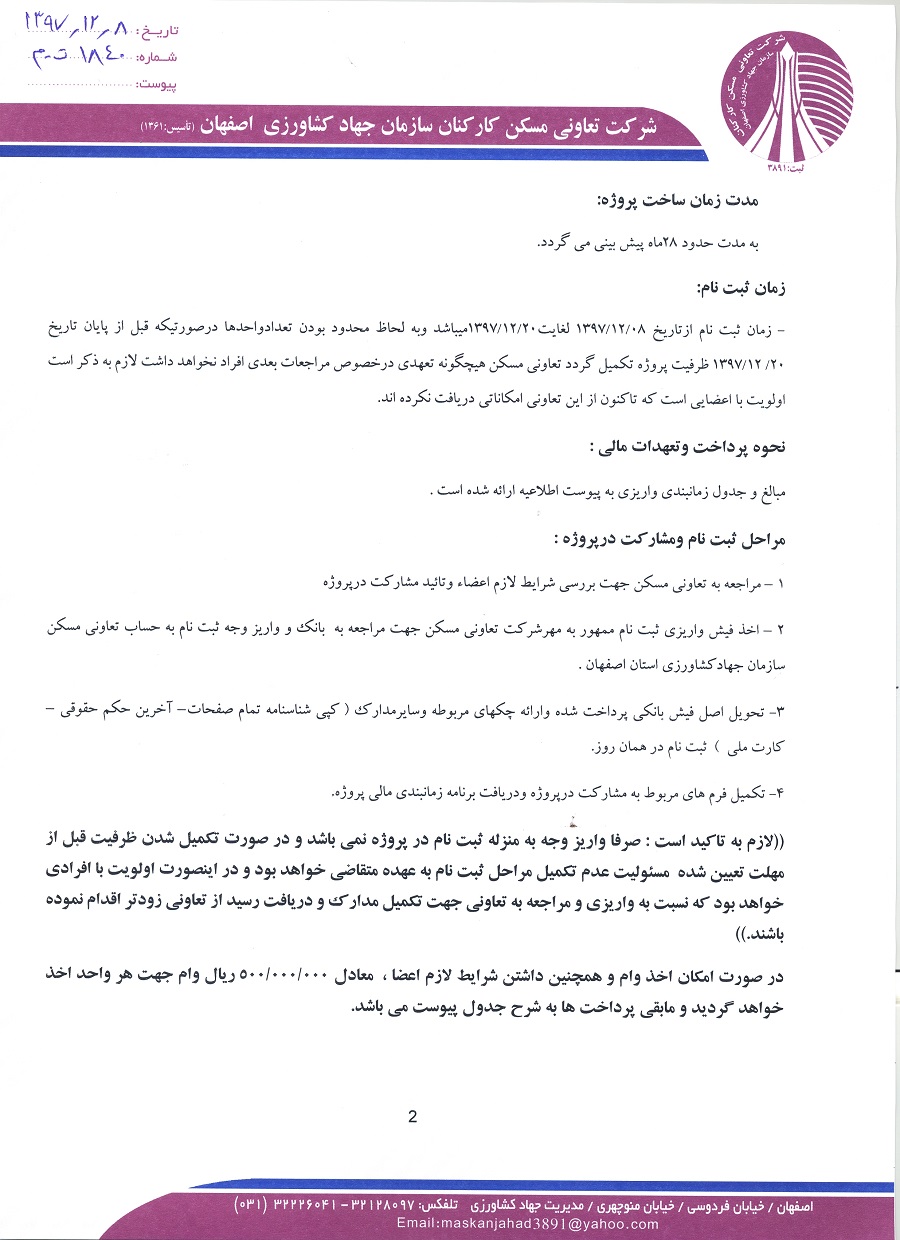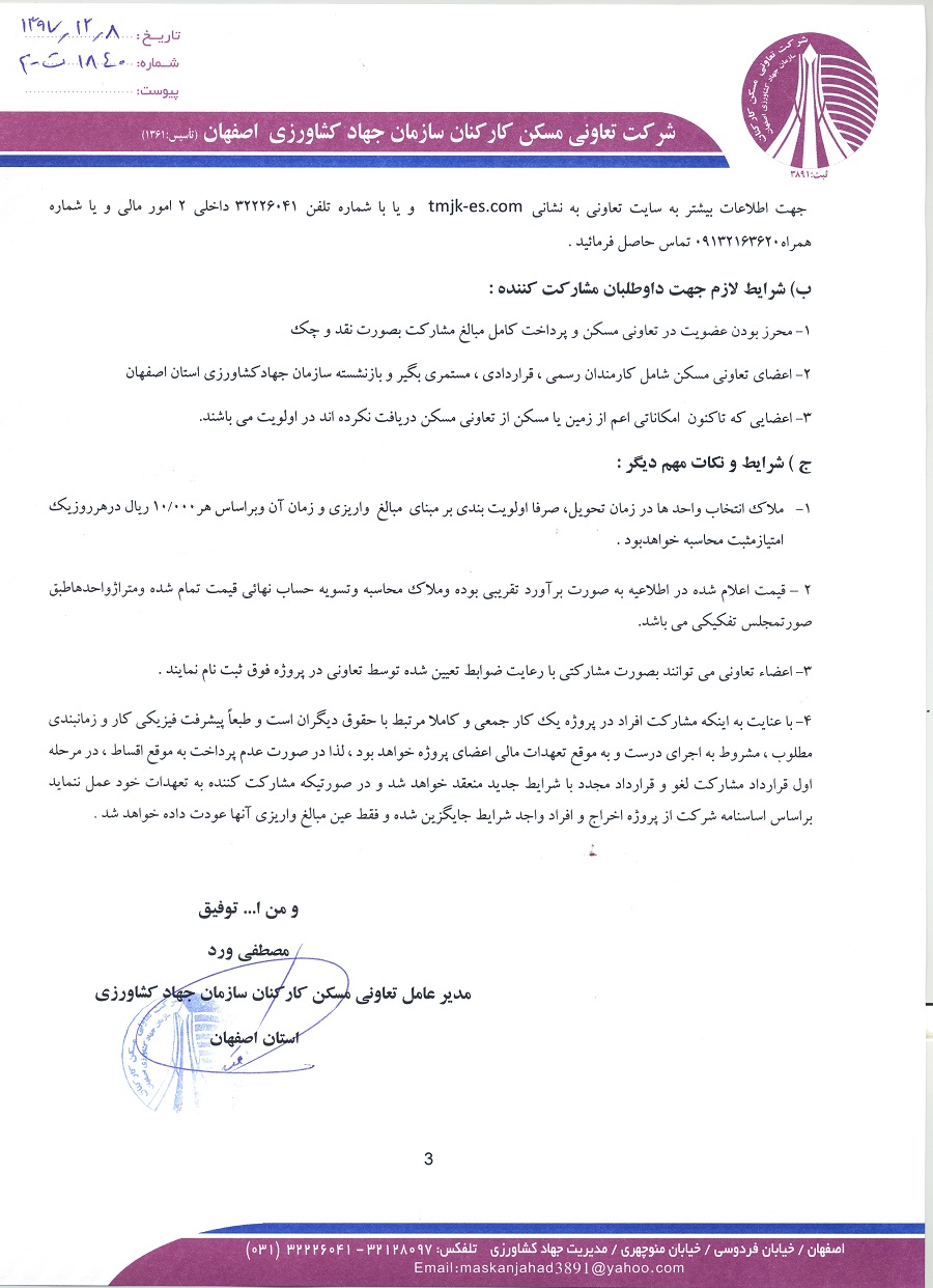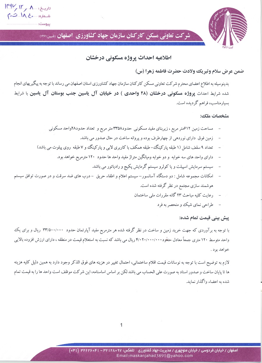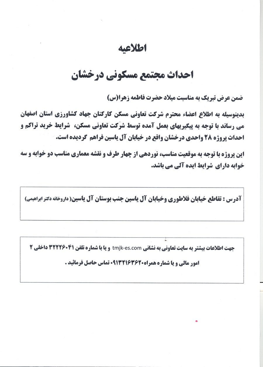 اطلاعیه احداث پروژه مسکونی درخشان