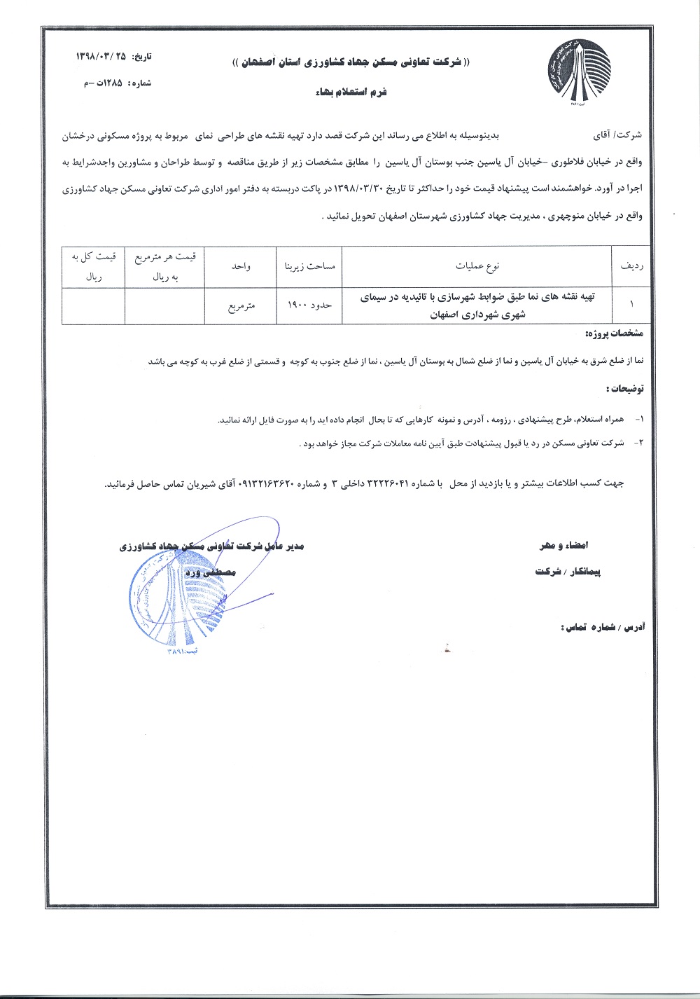 استعلام تهیه نقشه های طراحی نمای پروژه درخشان